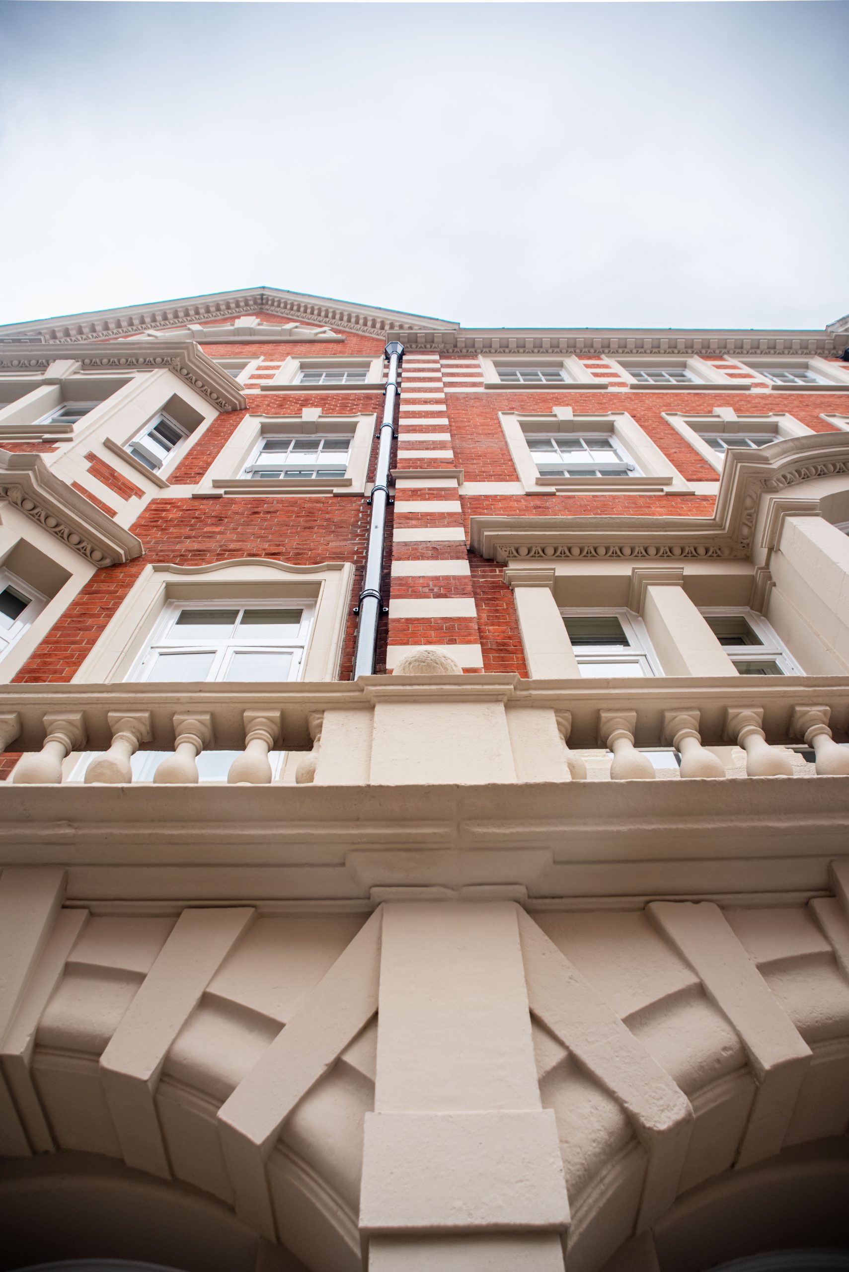 Materials were selected for durability and heritage suitability. KEIM UK exterior paints were chosen for their breathability and long-term performance on traditional facades, while Dulux coatings were used internally to provide resilience within communal areas.
