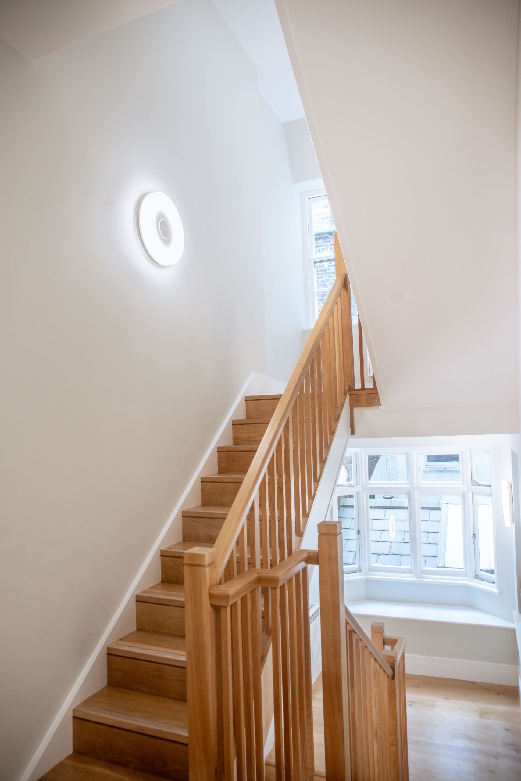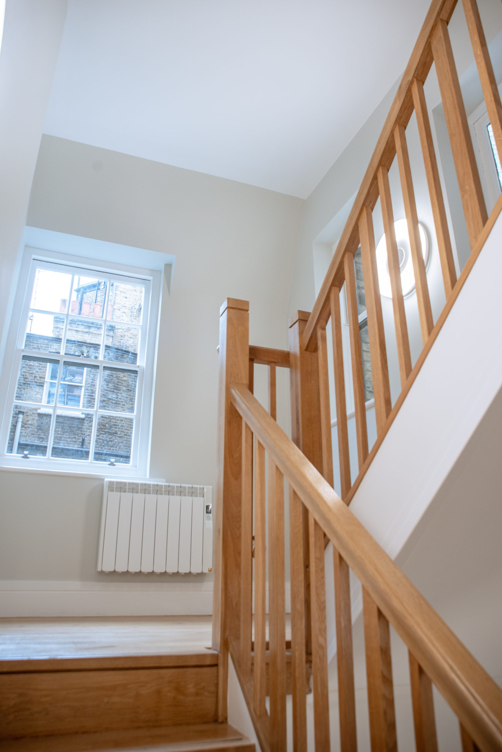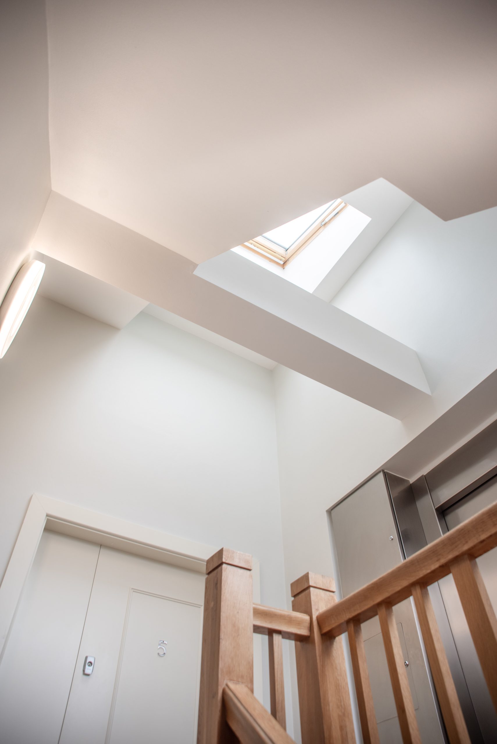 Alongside the decorative works, a full fire upgrade was completed to the internal communal staircase, including walls and ceilings. Torrex 3 fire-rated coatings from Tor Coatings were applied, ensuring compliance with current fire safety standards while maintaining a clean, refined finish.